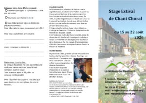 Ainsi pendant le stage l’accent pourra être mis sur la recherche du phrasé musical, du style, de la précision rythmique, de la justesse vocale et de l’écoute harmonique. Merci de vous inscrire rapidement